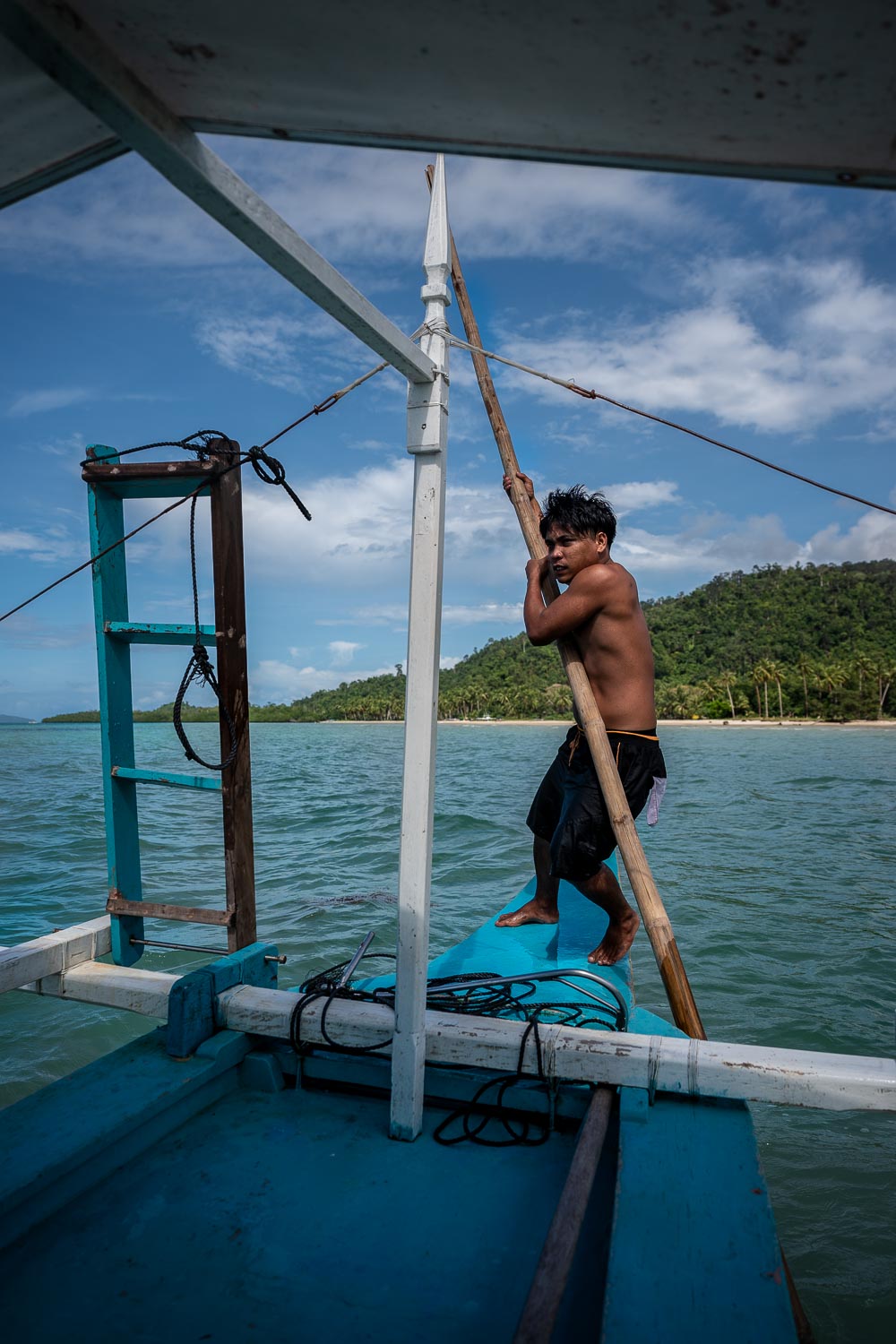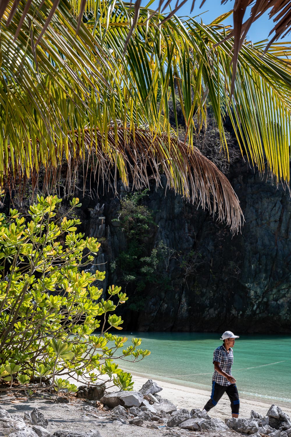 1 Pamuayan Beach, Palawan. Low hanging palm trees, stretching out over the shallow water. A couple of coconuts in the sand. A local fisherman in a traditional banca boat. The long bay of Pamuayan Beach is as alluring as it is secluded. Situated just north of Port Barton on the Philippine island Palawan, the secluded beach is reached either by a boat or an inland gravel road.