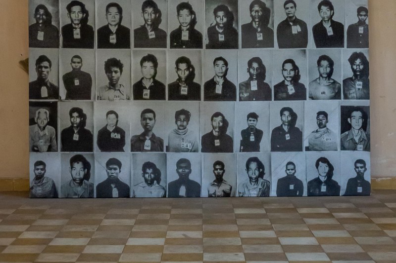 Interns had to learn specific rules to obey at all time. If not, they were punished with electric shocks from large batteries. Strapped to beds, the cables were put to the prisoners’ head, feet, and genitals. You can still see the fences set up outside the rooms, to prevent the prisoners from taking their own life by jumping in order to escape the torture. The S-21 Prison, today the Tuol Sleng Genocide Museum, is in parts left unchanged since the Khmer Rouge was driven out of power in 1979.