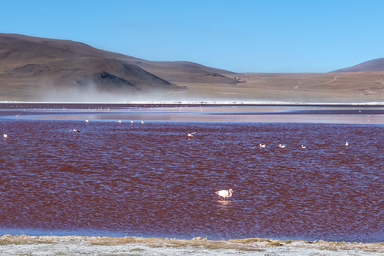 2 Andean Mountains, Bolivia. Driving through Valle de Dalí in southwestern Bolivia is like entering a Salvador Dalí painting. A surreal and monochromatic landscape, sweeping cross the horizon like a wave of clay on a canvas painting. Endless miles of dry and barren land, until you reach the Laguna Cororada. A red shimmering lake attracting thousands of pink flamingos, crowding at the shore with the occasional llama.