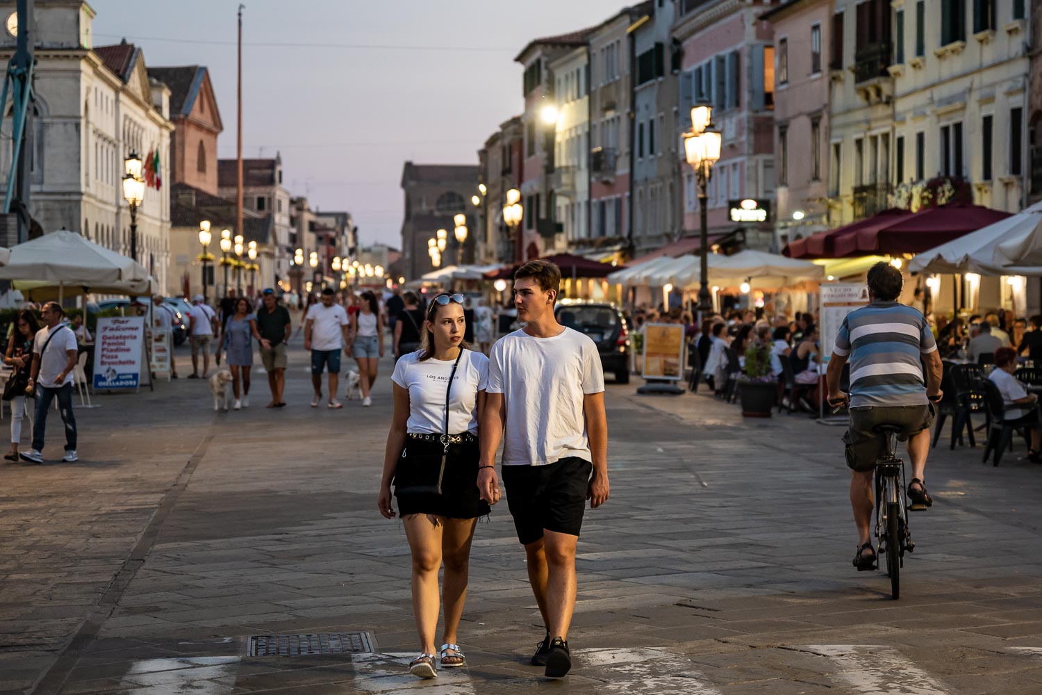 Follow the Canal Vena, splitting the peninsula in two, and walk along the canal facing houses. Fresh baked bread, yawning people in their windows, and pop-up markets selling fruits. At Corso del Popolo, a restaurant owner prepares the fish of the day. A group of kids are playing in the street. Across the bay is Venice and a never ending silhouette of cruise ships, merchandise vendors, and crowds of tourists. So close, but still so far away.